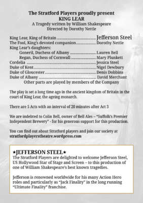 - The Stratford Players present King Lear: Imogen Blackwell as Jessica playing Cordelia with Tim McGill as Jefferson playing King Lear (A Bunch of Amateurs, SBADS 2025)