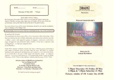 - (A Midsummer Night’s Dream, SBADS 2011)