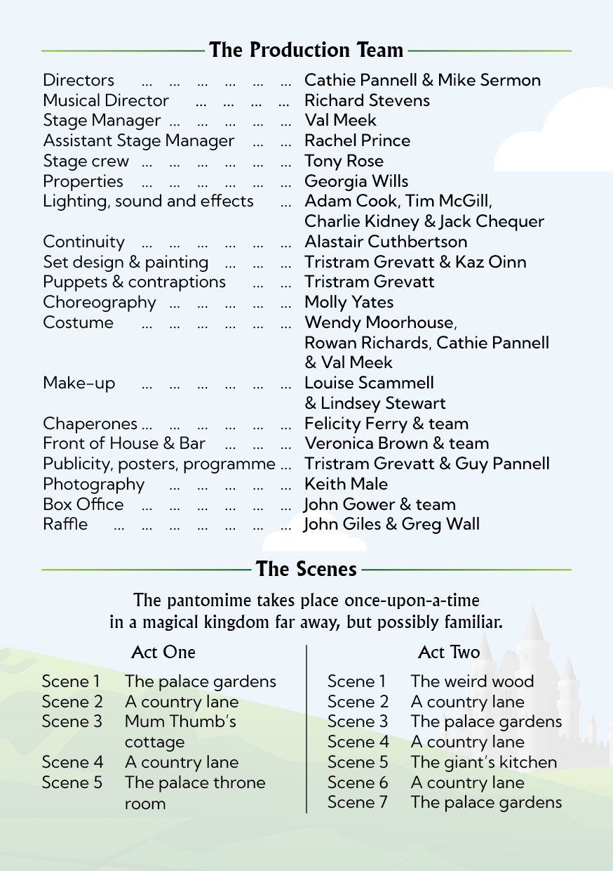 - Palace Gardens set for the 2023 SBADS pantomime “Tom Thumb”