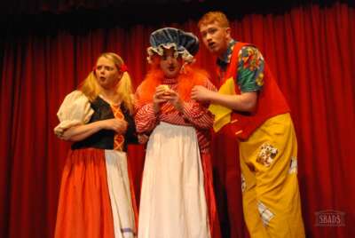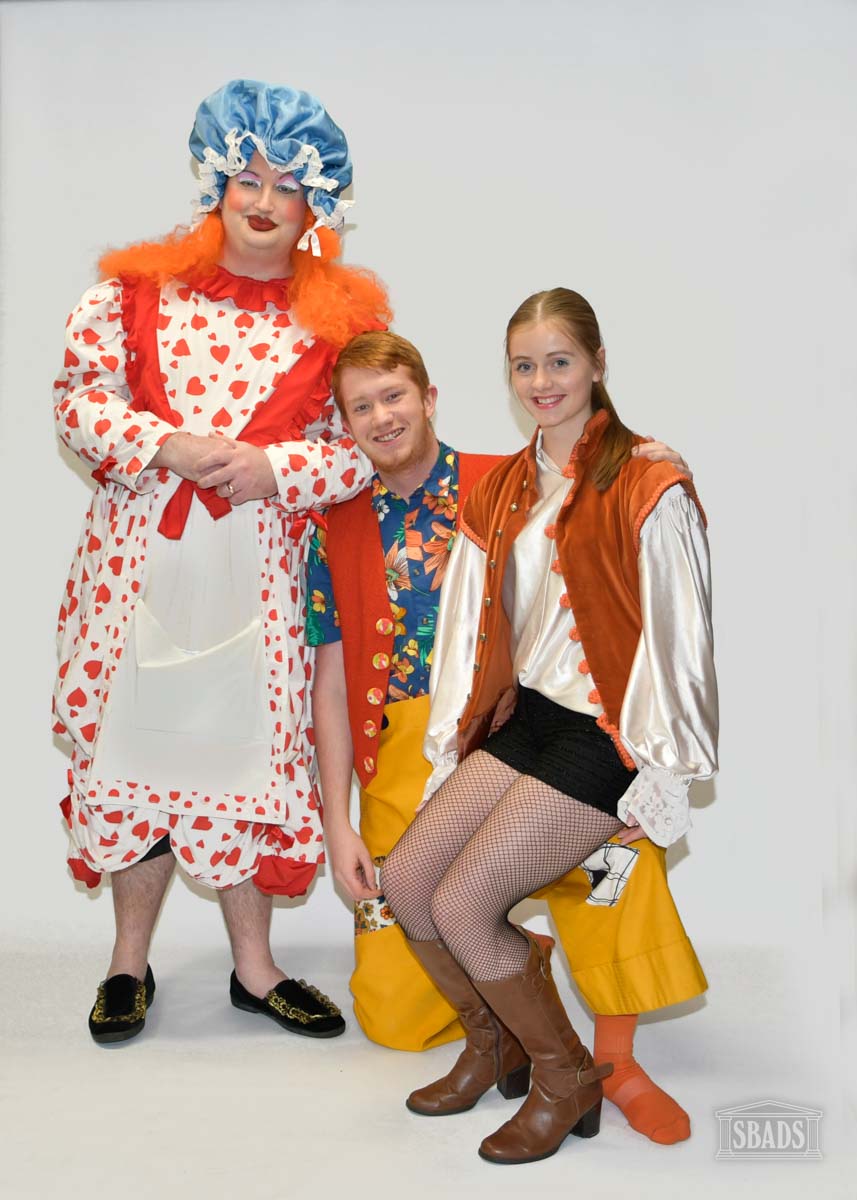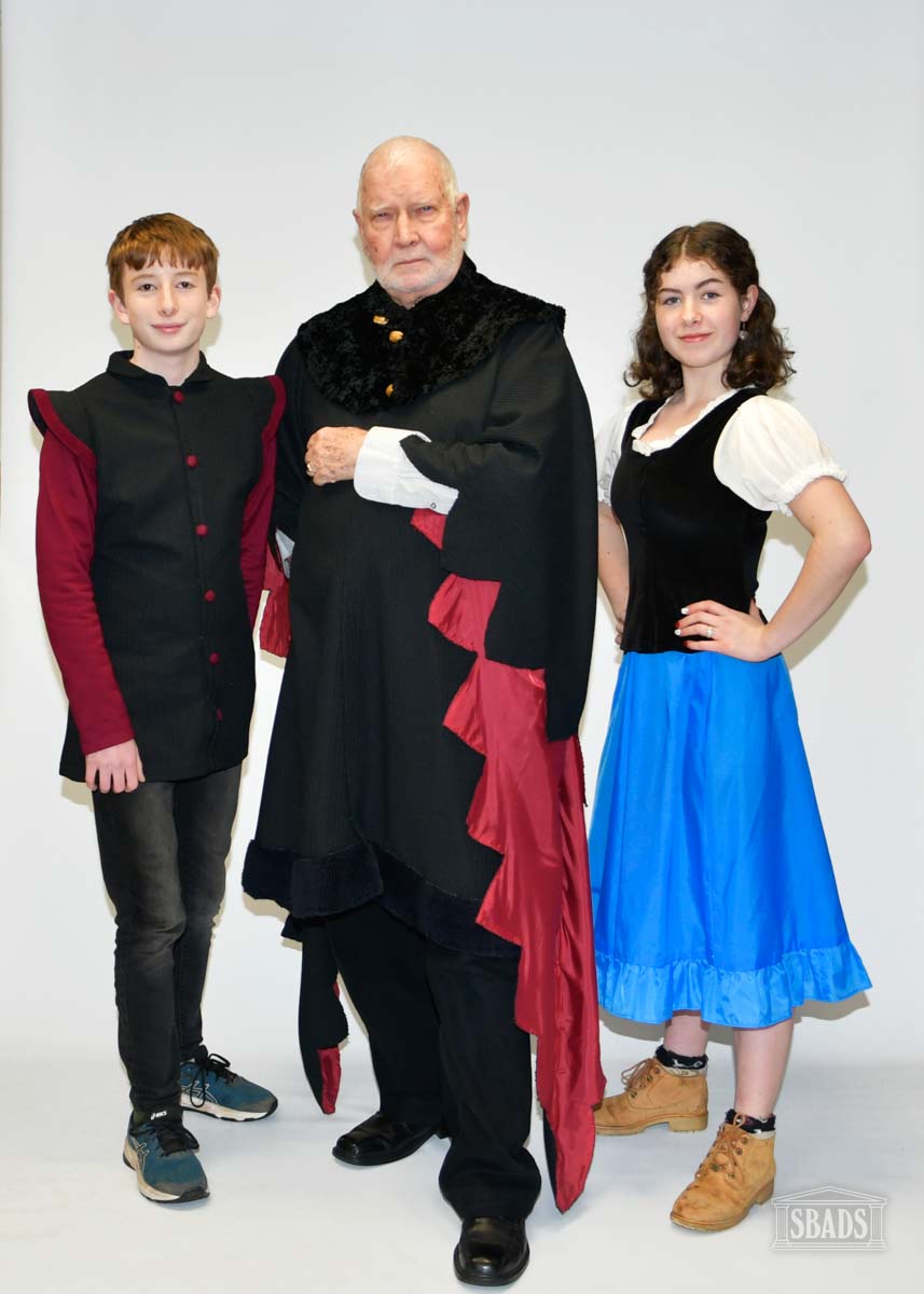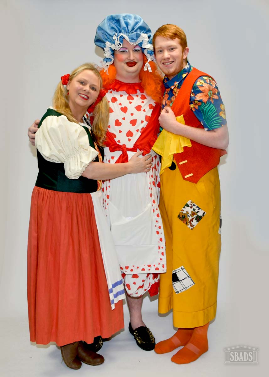 - Donna Wills, Robin Lee and Ethan Smith as Lucy Lastic, Mum Thumb and Tim Thumb in the SBADS 2023 production of “Tom Thumb”